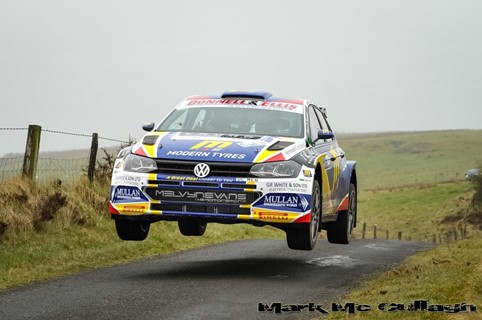 Desi Henry in his Fiesta Rally2 had taken the rally lead from the start on Friday. Then Callum Devine from Claudy, also out for the first time in a Polo R5, took over for two stages until Kilrea’s Henry hit back and then held the lead until his Fiesta engine expired at the finish of SS9 on Saturday morning. Other leading retirements included the Polos of Meirion Evans, Declan Boyle and Brendan Cumiskey plus the Skoda Fabia R5 driven by Cathan McCourt.